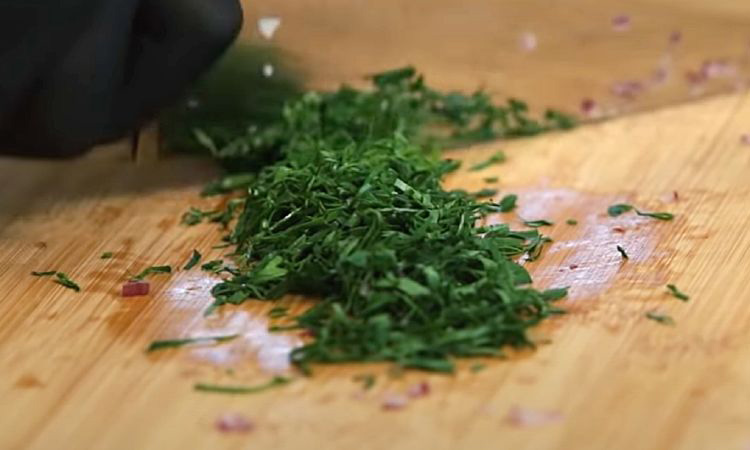 Достаньте гвоздику, душистый перец и корицу, затем вмешайте мелко нарезанную зелень, доведите до кипения и сразу снимите с огня.