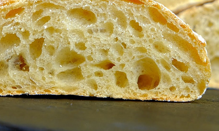Чиабатту лучше остужать полностью, чтобы мякиш стабилизировался и сохранил крупную пористую структуру.