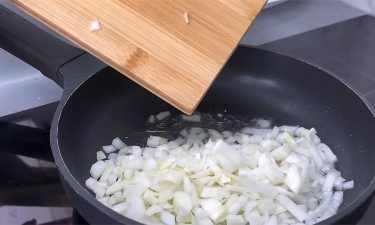 Подготовку начните с отваривания картофеля в мундире в подсоленной воде до полной готовности, после чего его необходимо достать из воды и дать полностью остыть. Пока варится картофель, займитесь овощами: репчатый лук нарежьте мелким кубиком и обжарьте на сковороде с небольшим количеством растительного масла до золотистого цвета, добавив в конце кусочек сливочного масла для аромата.