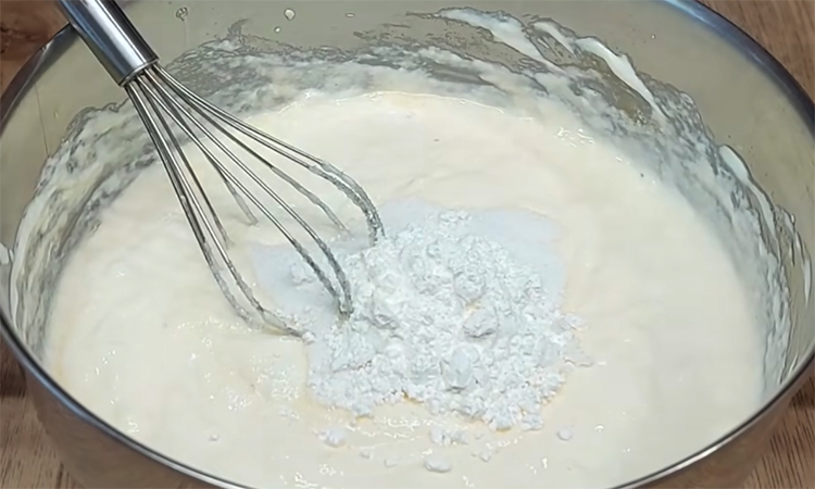 Для приготовления крема соедините в широкой кастрюле сметану или йогурт с яйцами, сахаром и кукурузным крахмалом, тщательно перемешивая венчиком до исчезновения комочков. Поставьте кастрюлю на огонь и при непрерывном помешивании доведите массу до загустения, после чего снимите с плиты, добавьте ванилин и вареное сгущенное молоко.