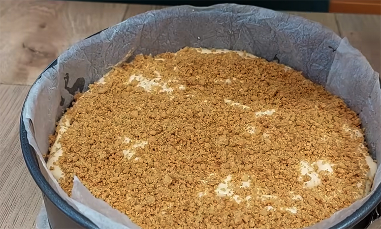После охлаждения торт отлично держит форму и легко нарезается, радуя сочетанием хрустящих крошек и тающей во рту начинки.