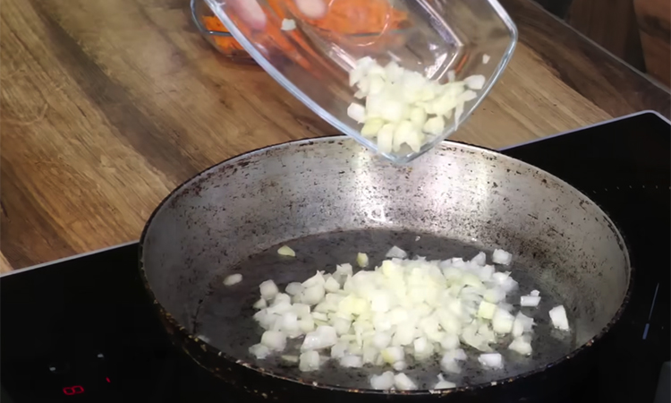 Тщательно переберите печенку и удалите все лишние прожилки или желчные пузыри, а затем нарежьте на максимально равные по размеру части. Очистите лук и морковь, после чего измельчите овощи кубиком или натрите на терке. Раскалите сковороду с растительным маслом и по очереди обжарьте сначала лук, а затем добавьте к нему морковь.