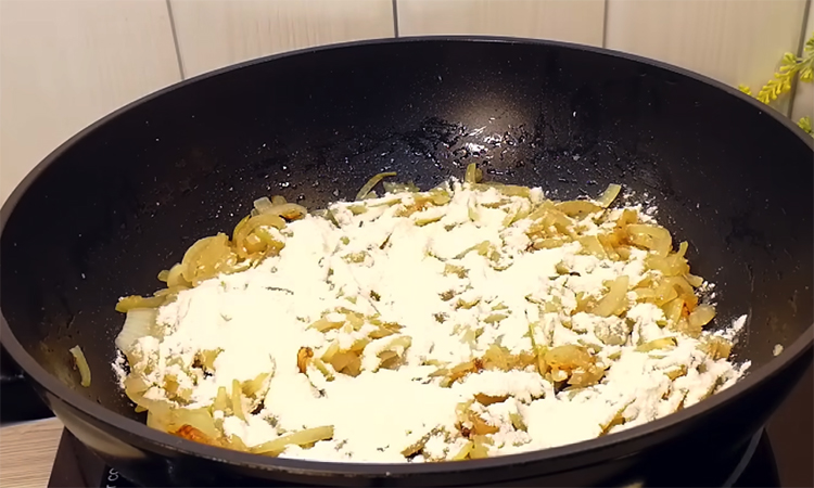 Для соуса обжарьте нарезанный лук на смеси растительного и сливочного масел до золотистого цвета, затем всыпьте муку и пассеруйте еще пару минут. Постепенно влейте молоко, постоянно помешивая венчиком до легкого загустения, и добавьте мускатный орех.