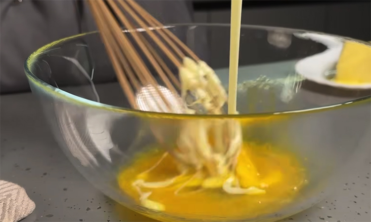 Разбейте яйцо в миску, добавьте щепотку соли и перемешайте венчиком до объединения. Влейте сгущенное молоко и тщательно размешайте массу до однородности. Добавьте мягкое сливочное масло комнатной температуры и перемешайте, добиваясь гладкой консистенции. Смешайте просеянную муку с разрыхлителем и постепенно введите в жидкую основу, аккуратно перемешивая, пока тесто не станет густым и пластичным.