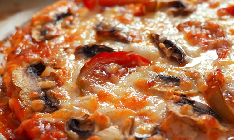 Готовую пиццу достаньте из печи, дайте ей минуту постоять и сразу нарезайте на порционные кусочки, наслаждаясь нежной текстурой и богатым вкусом.