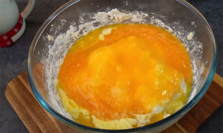 Отмерьте всю муку и сахар, от общей массы отделите две столовые ложки муки и одну столовую ложку сахара. Добавьте к ним дрожжи, влейте теплое молоко и тщательно перемешайте венчиком до однородности. Оставьте опару в теплом месте на 15–20 минут до появления пузырьков. В подошедшую опару вмешайте один стакан муки из общей массы и снова оставьте подходить на 15 минут. Взбейте яйца с оставшимся сахаром до соединения.