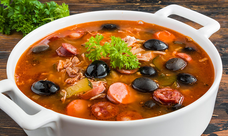 Когда нужен суп с выраженным вкусом и плотной текстурой, солянка остается одним из самых надежных вариантов. Ее ценят за сочетание копченостей, томатной пасты, соленых огурцов и рассола, которые формируют узнаваемый профиль блюда. Такой суп не требует долгой варки, но при этом выглядит и ощущается как аппетитное домашнее блюдо, особенно хорошо солянка раскрывается с разными видами мяса: суп получается густым, сытным и ароматным.