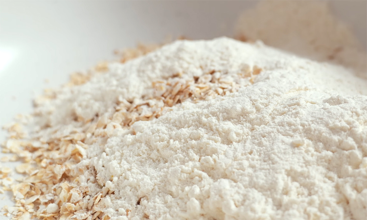 В отдельной миске соедините овсяные хлопья, муку и соль, слегка перемешайте. Влейте к сухим ингредиентам медово-масляную смесь и перемешайте до однородности. Добавьте яйцо и снова тщательно соедините массу, тесто получится ароматным и вязким. Яблоко нарежьте небольшими кубиками, кожуру при желании оставьте. Вмешайте яблоки в тесто, распределяя их равномерно.