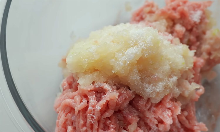 Приготовьте фарш из куриного мяса и репчатого лука, добавьте соль и черный молотый перец, после чего тщательно перемешайте массу. Нарежьте батон на ломтики и нанесите на каждый из них слой фарша толщиной около пяти миллиметров, равномерно распределяя мясо по всей поверхности. В отдельной миске взбейте яйца с молоком и щепоткой соли до однородности, чтобы получился кляр.