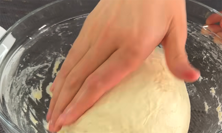 Смачивая руки водой, начните аккуратно подхватывать края теста снизу и растягивать их вверх, складывая массу к центру. Повторите процедуру складывания несколько раз с интервалом в тридцать минут, чтобы тесто стало более пузырчатым и сильным. Переложите массу в смазанную маслом миску и дайте ей окончательно подняться в теплом месте в течение часа.