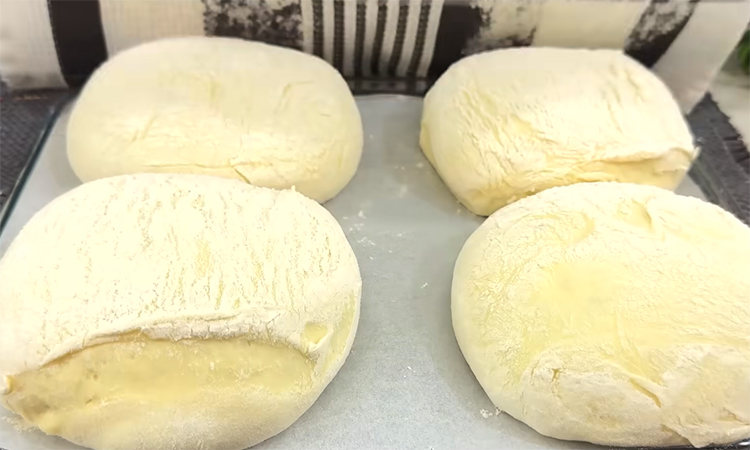 Используйте небольшую миску как форму, чтобы бережно перенести заготовки на противень, сохраняя внутри накопленный воздух. Оставьте хлеб на расстойку на тридцать минут, а затем выпекайте при 200 градусах около 15–25 минут до уверенного золотистого цвета.