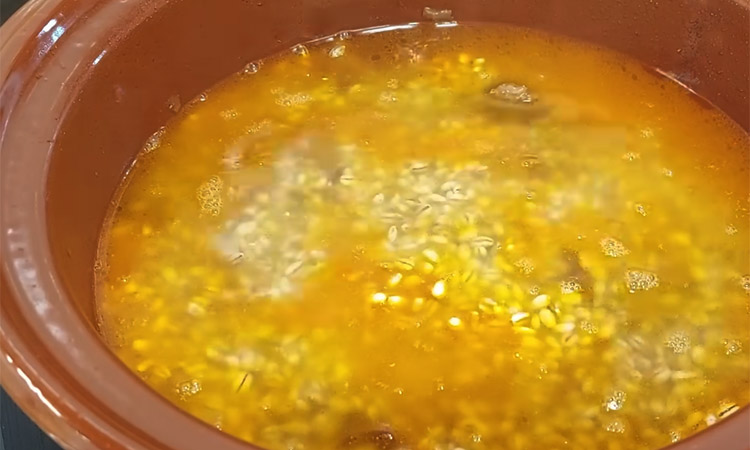 Сухой рассольник по вкусу напомнит скорее сытное, аппетитное рагу, бульона здесь совсем нет. Мясо после долгого томления получается мягким как масло, сама каша впитывает все соки, пропитываясь мясными соками и ароматом овощей. Добавление сельдерея и чеснока придает блюду пряный аромат, который делает простую крупу ресторанным деликатесом.