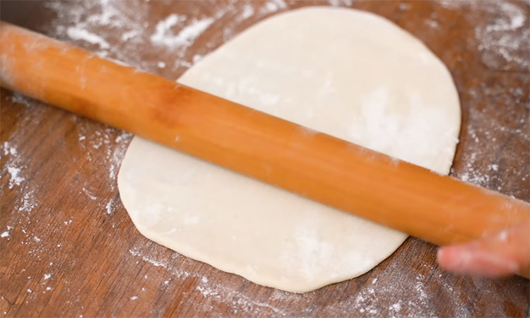 Для получения идеальной формы вырежьте ровный круг с помощью крышки от кастрюли подходящего диаметра. Выложите заготовку на сухую, хорошо разогретую сковороду и жарьте на огне чуть выше среднего по 20–30 секунд с каждой стороны.