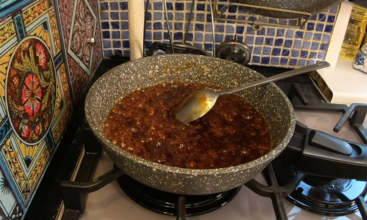 Выньте готовые фрикадельки шумовкой в отдельную тарелку. В этот же бульон положите яичную лапшу и варите её до готовности, как указано на упаковке. Пока лапша варится, мелко порубите чеснок и свежий имбирь. Разогрейте сковороду с маслом, обжарьте чеснок и имбирь полминуты до сильного запаха. Добавьте в сковороду сладкий чили, унаги, мёд и лимонный сок. Влейте пару ложек бульона из кастрюли и перемешайте соус. Выложите в загустевший соус фрикадельки и прогрейте их минуту, чтобы глазурь прилипла к мясу.