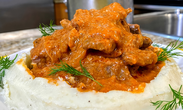 Бефстроганов считается одним из самых узнаваемых блюд из говядины, где решающую роль играет техника, но далеко не сложные ингредиенты. Правильная нарезка и высокая температура в начале приготовления помогают сохранить мягкость даже самого бюджетного отруба, обжаренный лук добавляет блюду естественную сладость, а соус на основе сметаны и томатной пасты делает вкус глубже и сбалансированнее. В свое время такое мясо могли позволить себе лишь люди состоятельные, теперь же его совсем просто приготовить дома.
