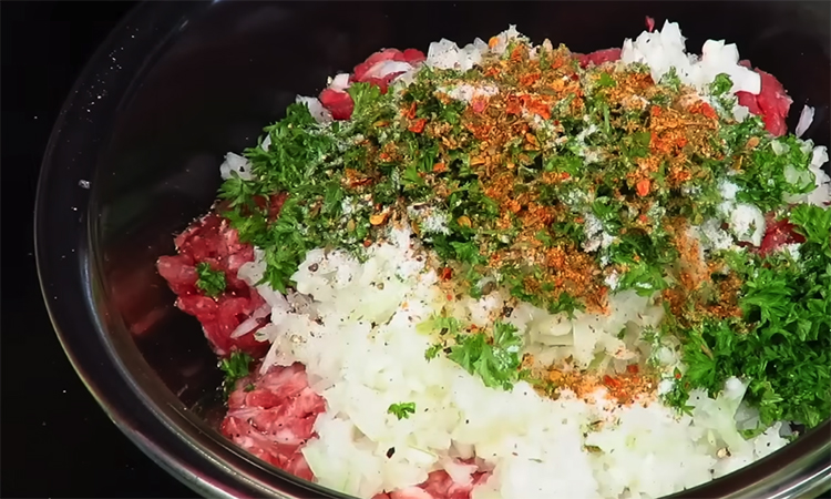 Очистите лук и нарежьте его средними кусочками. Измельчите лук вместе с чесноком в блендере так, чтобы масса не стала жидкой и сохранились мелкие кусочки. Переложите полученную смесь к фаршу. Мелко нарежьте петрушку и добавьте в миску. Введите соль, черный перец, смесь специй для барбекю, кориандр, сушеный чеснок, зиру и паприку.