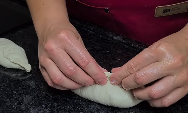 Смажьте руки маслом, соберите тесто в комок и оставьте в теплом месте на полтора часа, пока оно не увеличится в три раза. Смажьте стол маслом, отщипывайте кусочки теста размером с яйцо, растягивайте их пальцами и выкладывайте в центр щедрую порцию холодной начинки.