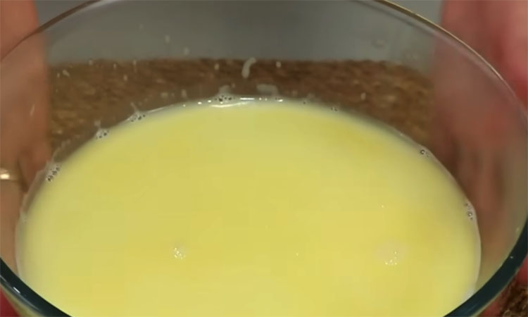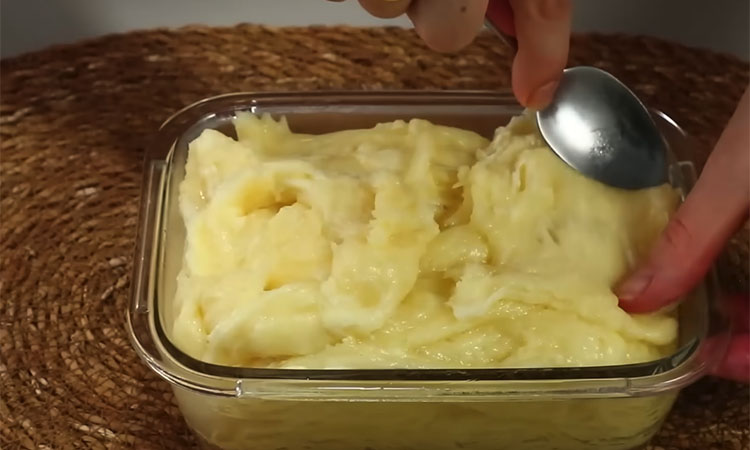 Вы заметите, как сыр начнет еще сильнее тянуться за ложкой, после чего сразу переложите его в смазанную маслом форму и разровняйте поверхность.