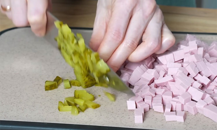 Переложите готовое тесто в миску, накройте полотенцем и оставьте в теплом месте на один час для подъема. Пока тесто подходит, займитесь начинкой: нарежьте колбасу мелкими кубиками или соломкой, маринованный огурчик также измельчите. Твёрдый сыр натрите на крупной тёрке. Для заливки в отдельной миске смешайте одно яйцо со столовой ложкой сметаны и столовой ложкой майонеза. Соедините эту смесь с колбасой и огурцами, хорошо перемешайте — такая заправка сделает начинку очень сочной и не даст ей разваливаться.