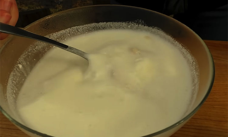 Из готового бульона достаньте овощи, положите в него нарезанный кубиками картофель и целые белые колбаски, проварив их вместе около десяти минут. Достаньте белые колбаски из супа, нарежьте их кружочками и верните обратно в кастрюлю вместе с зажаркой из лука и копченостей. В отдельной емкости смешайте сметану с белым хреном и небольшим количеством теплого бульона, тщательно растирая массу до однородности, чтобы не было комочков.