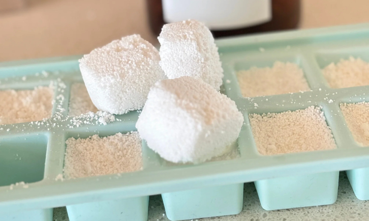 Чтобы приготовить домашние таблетки, понадобится сода, соль, лимонная кислота, вода и форма для льда. Начнем с подготовки соды: стакан пересыпаем на противень и слегка подсушиваем в духовке при 200 градусах около 30 минут. Это усиливает её моющие свойства. Затем пересыпаем подсушенную соду в глубокую миску, добавляем второй стакан соды, стакан воды, немного лимонной кислоты и соли. Все тщательно перемешиваем и раскладываем смесь в формы для льда. Уже через полчаса после заморозки ваши таблетки готовы к использованию.