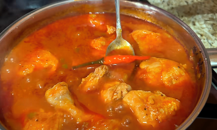 5. Доведите блюдо до лёгкого кипения, затем уменьшите огонь до слабого, накройте крышкой и тушите 25–35 минут. За это время курица станет мягкой, а соус — густым и насыщенным. Периодически перемешивайте и следите за консистенцией: если соус слишком густеет, можно добавить немного воды или бульона.