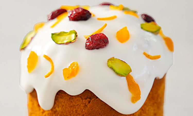 Сразу после нанесения украсьте верхушки измельченной курагой клюквой или орехами пока поверхность не схватилась. Оставьте куличи на некоторое время: глазурь застывает достаточно быстро становясь абсолютно не липкой и при этом не теряя эластичности при нарезке.