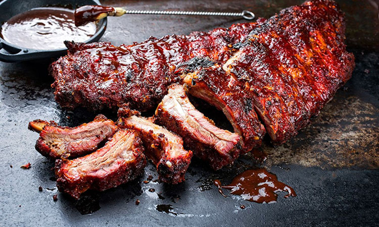 Запекайте в духовке при температуре 160°C (без конвекции) в течение 2.5 часов. Спустя указанное время аккуратно откройте фольгу, слейте лишний бульон и смажьте ребра соусом барбекю. Поднимите температуру до 220°C (можно включить конвекцию) и запекайте еще около 15 минут до появления глянцевой корочки.