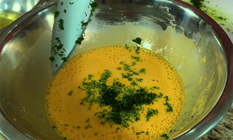 Туда же всыпьте четверть стакана муки для стабильности текстуры и тщательно перемешайте венчиком до однородности. Добавьте в эту смесь натертый сыр и мелко нарезанную зелень петрушки. Теперь займитесь белками: взбейте их миксером в чистой сухой посуде до состояния мягких пиков (это займет около 4 минут). Очень важно правильно соединить две массы: сначала добавьте треть взбитых белков в желтковую смесь и аккуратно перемешайте, а затем введите оставшиеся белки, бережно складывая массу лопаткой снизу вверх.