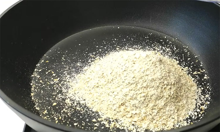 Овсяные хлопья измельчите в блендере, но не до состояния муки, а чтобы остались небольшие крупинки. Высыпьте получившуюся массу на сухую разогретую сковороду, добавьте отруби и обжаривайте на среднем огне, постоянно помешивая. Как только появится характерный приятный запах и золотистый оттенок, выключите огонь, добавьте 8 г сахарозаменителя, щепотку соли и ванилин, тщательно перемешайте. Для приготовления крема в сотейник налейте молоко, добавьте три яйца, крахмал, оставшиеся 8 г сахарозаменителя и ванилин.