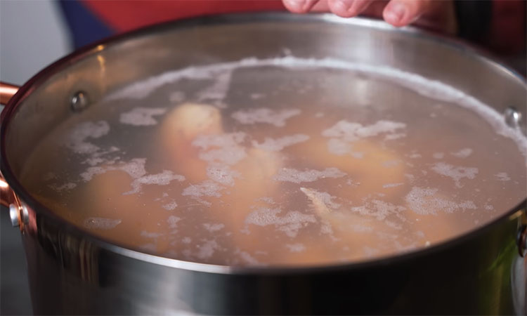 Убавьте огонь до минимума, чтобы жидкость лишь слегка подергивалась, и постоянно снимайте образующуюся пену в течение первых 50 минут варки. Добавьте в кастрюлю очищенную морковь, стебли сельдерея и целые луковицы спустя почти час после начала томления. Варите бульон еще 15-20 минут, после чего положите лавровый лист и горошины черного перца.