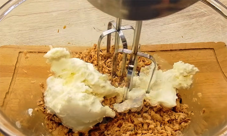 В отдельной чистой емкости взбейте белки со щепоткой соли до состояния крепкой устойчивой пены, начиная с низких оборотов и постепенно переходя на максимальные. Аккуратно, в несколько приемов, введите взбитые белки в рыбную смесь, перемешивая лопаткой сверху вниз, чтобы сохранить воздушную структуру будущей начинки.