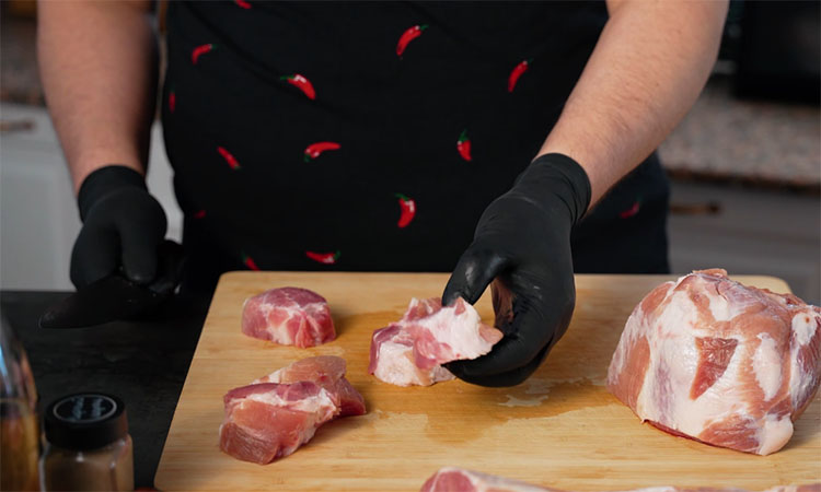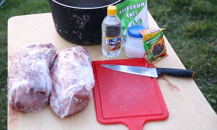 Нарежьте лук крупными полукольцами, засыпьте половиной нормы соли и тщательно помните руками, чтобы лук начал активно выделять сок, но при этом не превратился в кашу. Свиную шейку нарежьте кусочками примерно по 5 сантиметров, стараясь разделять мясо так, чтобы жировые прослойки оказывались на поверхности — это критически важно для того, чтобы жир правильно вытапливался и запекался на углях, а не оставался сырым внутри. Сложите мясо в емкость к луку, добавьте оставшуюся соль, черный и острый перец, а затем влейте уксус.