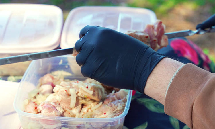 Хорошенько перемешайте маринад руками, накройте контейнер и отправьте в холодильник на всю ночь или даже на сутки, чтобы кислота успела пропитать каждое волокно. На природе насаживайте кусочки на шампуры не слишком плотно, обязательно стряхивая лишний лук, чтобы он не подгорал и не портил вкус мяса. Жарьте шашлык на раскаленных седых углях, постоянно переворачивая шампуры для равномерного запечатывания сока внутри каждого кусочка.