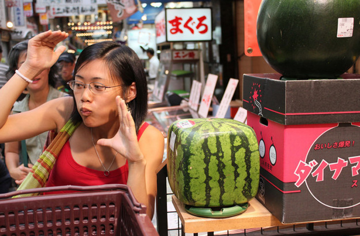 Обычные арбузы выращивают в деревянных ящиках, за счет чего плоды приобретают характерную квадратную форму. К сожалению, процесс формовки квадратного арбуза приносит вред вкусу и аромату фрукта, однако недостатка желающих купить диковинный плод не наблюдается.