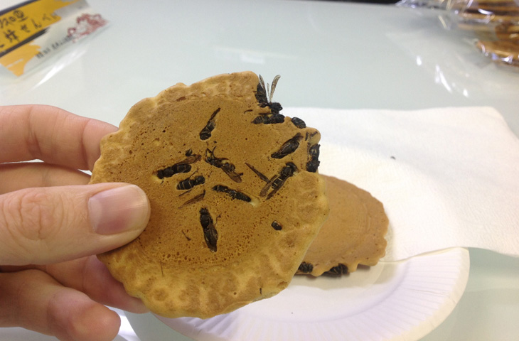 Насекомые обладают высокой питательной ценностью и азиаты традиционно включают их в свой рацион. Одно из самых известных японских лакомств-эндемиков — печенье с осами, которых заранее отваривают, а затем замешивают с тестом и запекают.