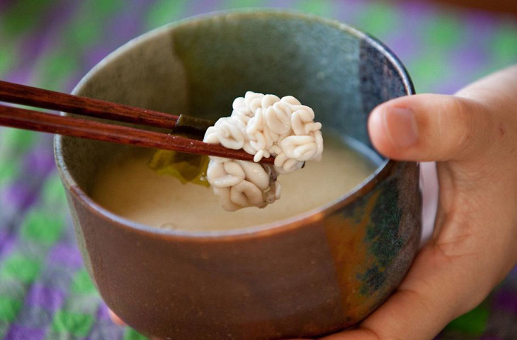 Если вы любите свежие морепродукты, то это блюдо для вас. Только что умерщвленный кальмар ошпаривается кипятком и подается на стол. Вы поливаете кальмара соевым соусом и еще живые клетки реагируют на соль странным танцем, который должен пробудить аппетит.