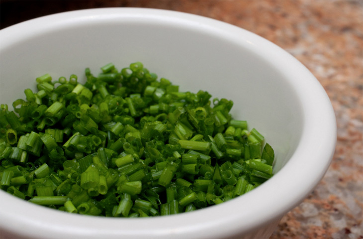 В блендере смешать зеленый лук, оливковое масло, измельченный красный перец и чеснок. Приправить солью.