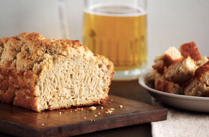 Разогреть духовку до 200 °C. Смешать муку, сахар, соль и пиво. Хорошенько замесить тесто. Выложить в смазанную маслом форму и выпекать около 55 минут. За три минуты до готовности вынуть хлеб из духовки и смазать поверхность подсолнечным маслом.