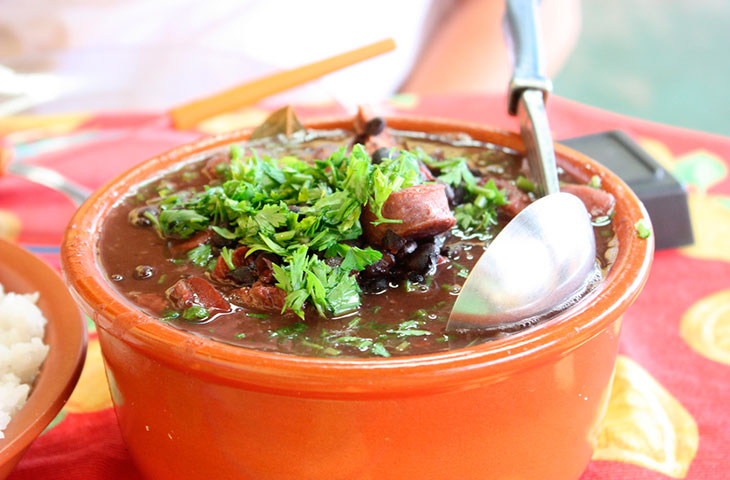Из огромного количества и разнообразия национальной бразильской кухни гурманы всего мира часто отмечают блюдо фейжоада – тушенную с черной фасолью копченую говядину и свинину. Подается оно с рисом, зеленью, острым соусом и нарезанным апельсином для помощи пищеварению.