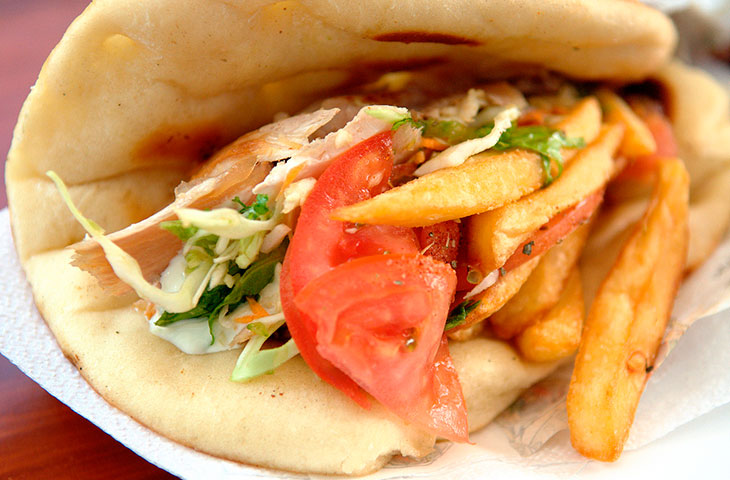 На всей территории Греции это блюдо готовят примерно одинаково – обжаривают практический любой вид мяса на вертеле, а затем подают с помидорами, луком и соусом. А вот последний как раз отличается в зависимости от региона – на севере гиро подают с горчицей и кетчупом, в то время как на юге – с соусом дзадзики из йогурта, свежего огурца и чеснока.