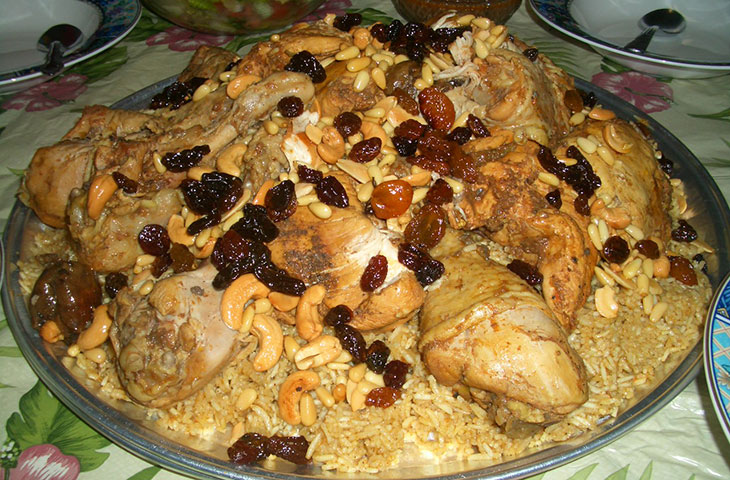 Популярное на всем Ближнем Востоке блюдо в Саудовской Аравии готовят из риса, смешанного с большим количеством специй (гвоздика, кардамон, шафран, корица, мускатный орех и проч), мясом и овощами. Если вы сможете осилить всю порцию, предложенную гостеприимным хозяином, то вы, вероятно, станете первым иностранцем, совершившим такой гастрономический подвиг.
