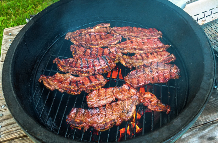 За океаном ребрышки такое же популярное блюдо, как стейк или бургер. Готовят их независимо от сезона, благо отруб прекрасно переносит любые способы термической обработки. Подходит для ребер и духовка, и сковорода, однако особенно хорошо мясо получается на гриле. Целые пластины ребер жарятся медленно и долго, но для нарезанных ребер хватит и получаса времени. Перед жаркой ребра стоит подержать немного в маринаде — так мясо получится на порядок вкуснее.