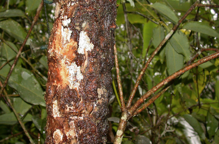 Цветки древесного растения семейства Кариковые развиваются в пазухах листьев. Потом они превращаются в плоды, напоминающие внешне дыню, а свисающие подобно гроздьям бананов.