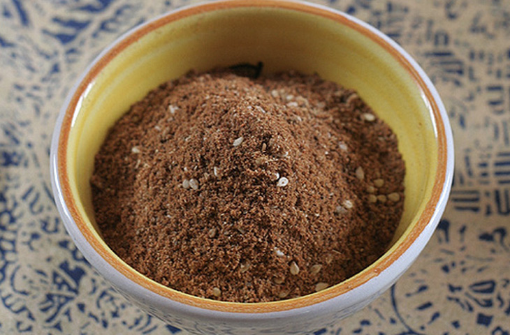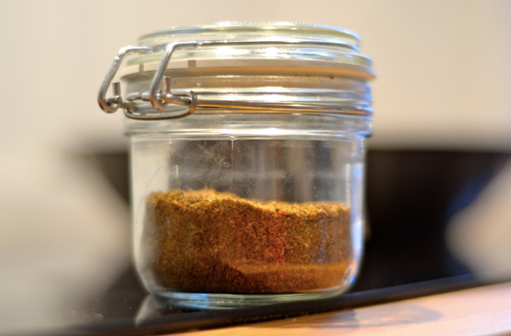 На сковороде обжарить на среднем огне кориандр, кумин, фенхель, кардамон, гвоздику, семена горчицы, семена пажитника, перец, бадьян и палочки корицы до появления аромата, 3-4 минуты. Добавить кокосовую стружку, листья пажитника и хлопья чили. Жарить до тех пор, пока стружка не станет золотистого цвета, 2 минуты. Дать остыть, затем переложить в мельницу для специй вместе с карри, имбирем, куркумой. Растереть в порошок.