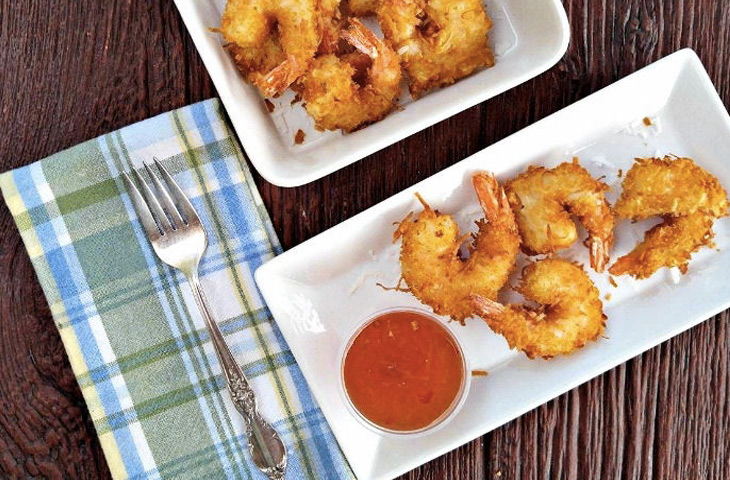 Нагреть масло в глубокой кастрюле до 180 градусов. Жарить креветки партиями, перевернув один раз, в течение 2-3 минут до светло-золотистого цвета. Обсушить на бумажных полотенцах. Подавать с любимым соусом.