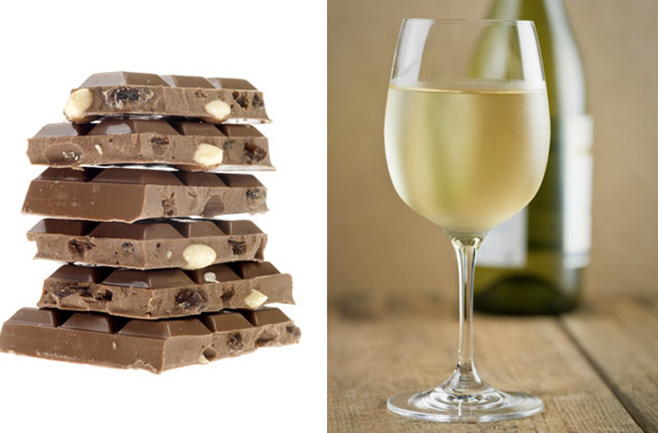 — Молочный шоколад с орехами и красное/белое вино —