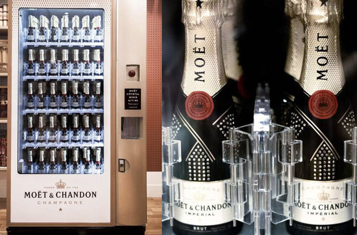 Вместо газировки и снеков из автомата некоторые фешенбельные отели предлагают своим гостям шампанское. Одними из первых подобным автоматом обзавелись Mandarin Oriental Hotel в Лас-Вегасе. Мини-бутылку Moët & Chandon можно приобрести за 20 долларов. Для этого на ресепшене необходимо обменять денежны купюры в указанном эквиваленте на жетон и вставить его в «игристый» чудо-автомат.