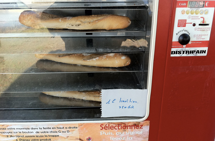 Всего за 20 секунд этот автомат может сделать багет. Вендинг-машину в течение дня «заправляют» готовым тестом, которое по требованию покупателя остается только испечь. В отличие от хлебного магазина в автомате багет доступен 24 часа в сутки.