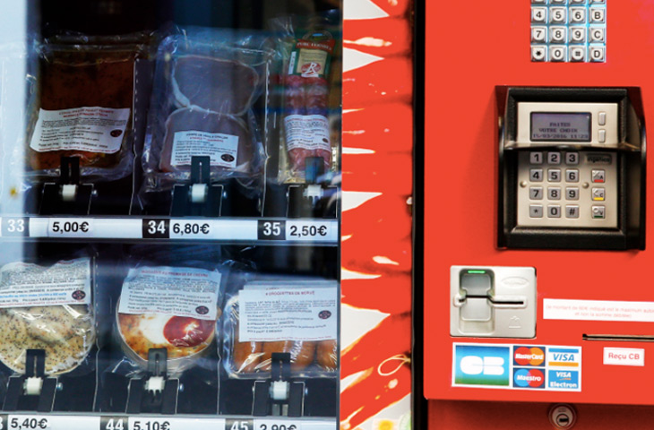 Хотя корпус этой машины и выглядит как автомат Coca-Cola, внутри нее скрыт ассортимент целой мясной лавки! Здесь можно найти и вакуумированные сосиски, и ветчину, и даже стейки, и все это можно приобрести в любое время суток. Наибольшей популярностью такие автоматы пользуются в Европе, где большинство магазинов работает до 20 часов вечера, а по воскресеньям многие из них закрыты.